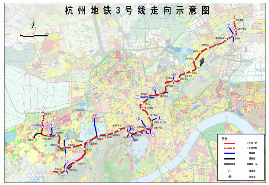 杭州地鐵3號線(Hangzhou Metro Line 3)是浙江省杭州市正在建設(shè)當(dāng)中的一條城市軌道交通線路,預(yù)計在2021年12月開通運營;標志色為檸檬黃。