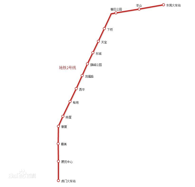 東莞軌道交通2號線(Dongguan Rail Transit Line 2)是廣東省東莞市第1條建成運營的地鐵線路,于2016年5月27日開通運營,其標志色為大紅色。