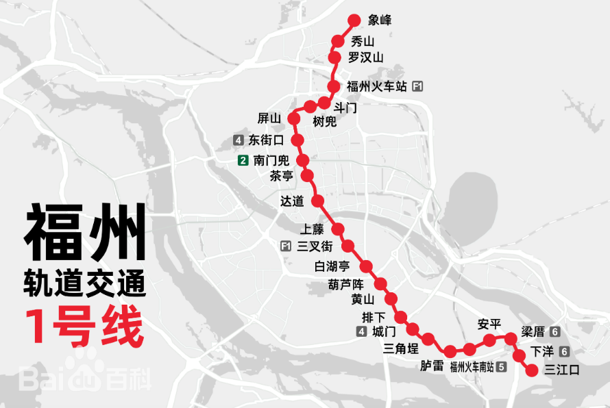 福州地鐵1號線(Fuzhou Metro Line 1)是中國福建省福州地鐵第一條建成運營的線路,一期南段(三叉街站至福州火車南站)于2016年5月18日開通初期運營,一期北段(象峰站至三叉街站)于2017年1月6日開通初期運營,二期工程(福州火車南站至三江口站)于2020年12月27日開通初期運營,標志色為幸福紅 。