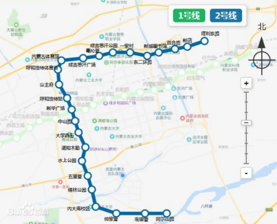 呼和浩特地鐵2號(hào)線一期工程南起于呼和浩特市賽罕區(qū)阿爾山路站,途經(jīng)玉泉區(qū),貫穿新華廣場(chǎng)區(qū)域,止于新城區(qū)塔利東路站,大致為南北走向,呈C字型鋪設(shè) 。