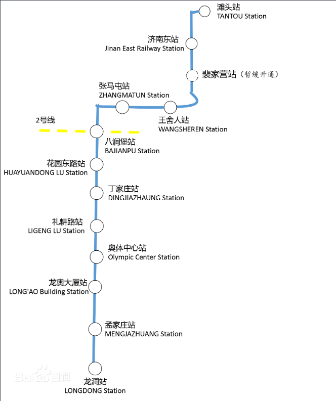 濟南軌道交通3號線,線路起于龍洞站,途徑歷下區(qū)、歷城區(qū),止于灘頭站,大致呈南北走向。