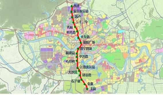 南寧軌道交通2號線為南寧市“十”字形骨架網線的豎線,是連接南寧市南北方向的骨干線。主線線路北起西津站,跨越西鄉塘區、興寧區、江南區、良慶區四個城區,與南寧軌道交通1號線在火車站及朝陽廣場站兩個車站之間并行,南至玉洞站。 東延線起于玉洞站沿良玉大道東延,止于壇澤站。