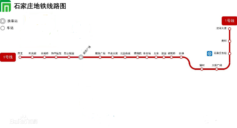 石家莊地鐵1號(hào)線(Shijiazhuang Metro Line 1)是中國(guó)河北省石家莊市建成運(yùn)營(yíng)的第一條地鐵線路,于2017年6月26日開(kāi)通運(yùn)營(yíng)一期工程,于2019年6月26日開(kāi)通試運(yùn)營(yíng)二期工程 [1] ,標(biāo)志色為紅色 。