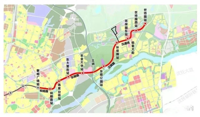 黎明廣場(chǎng)(既有車(chē)站)、新惠街、新寧街、東大營(yíng)街、農(nóng)業(yè)大學(xué)、東三環(huán)、東陵公園、中水街、伯官大街、世博園、世博園東。